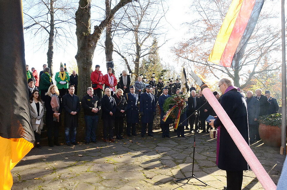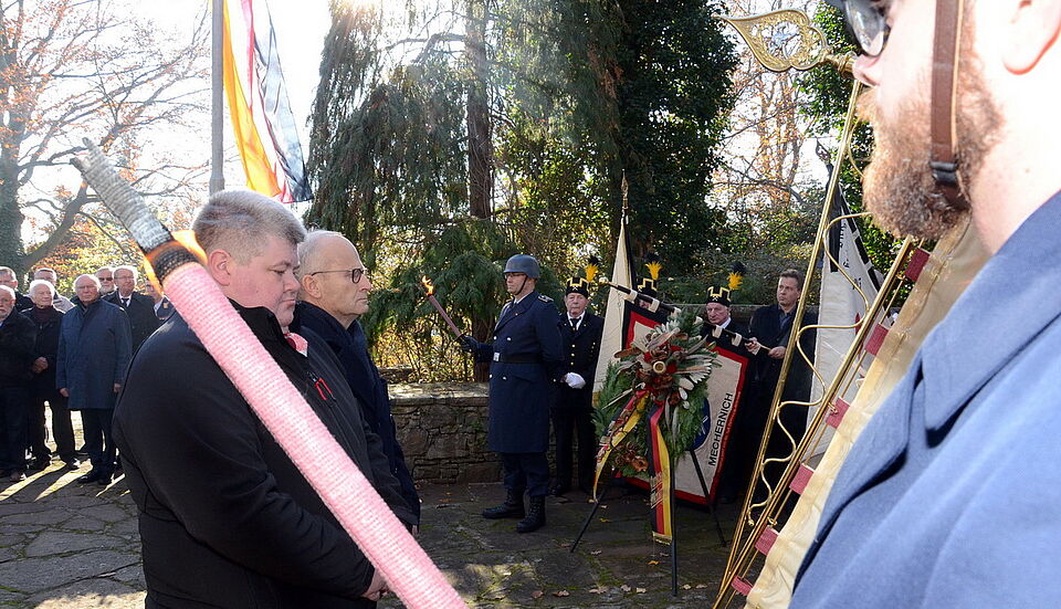An den Feierlichkeiten zum Volkstrauertag in Mechernich nahmen viele gesellschaftliche Gruppierungen und Vereine teil. Oberstleutnant Lars Rauhut, der Standortälteste in der Bundeswehr-Garnison Mechernich, und Bürgermeister Dr. Hans-Peter Schick legten Kränze nieder. Pfarrer Erik Pühringer segnete das Ehrenmal und mit ihm diejenigen, an deren gewaltsamen Tod das Denkmal erinnert.