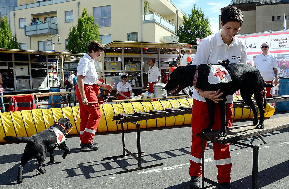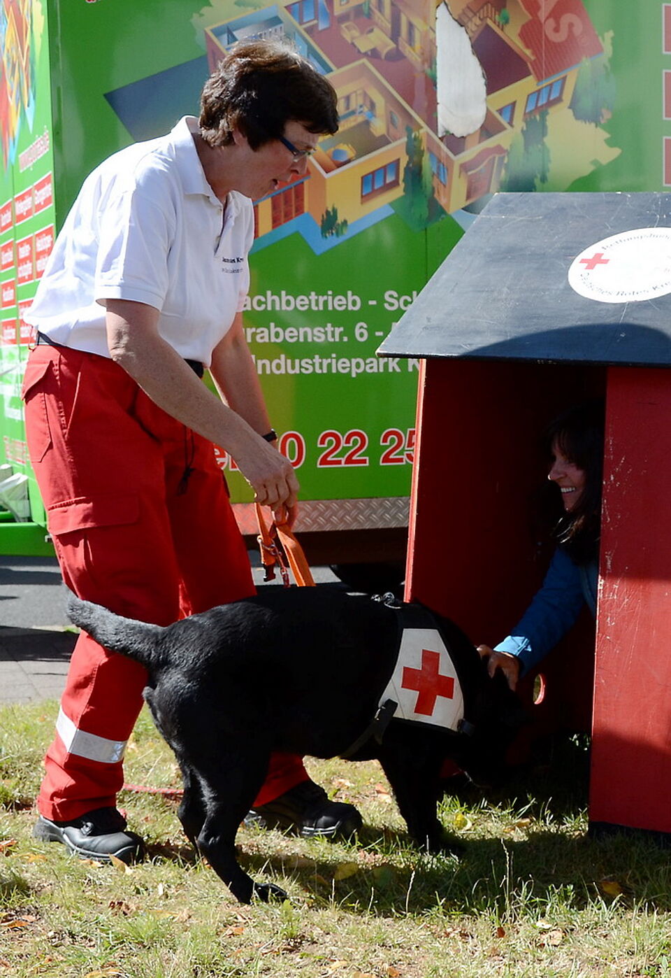 Ähnlich große Präsenz zeigten Rettungsdienste und Feuerwehr, allen voran das Rote Kreuz, das unter Führung seiner Einsatzleiter Bert Spilles und Sascha Suijkerland Wasserwacht Kall, Rettungshundestaffel, den Blutspendedienst um Sibille Sennerich und den starken Rotkreuz-Ortsverein Mechernich aufgeboten hatte.