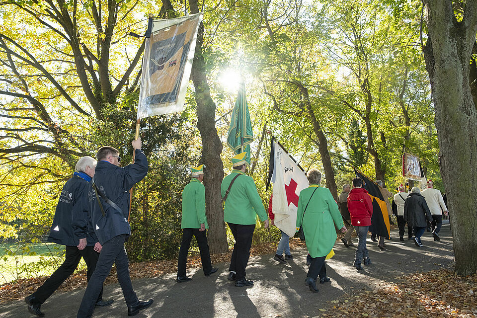 Um dieses Zeichen zu setzen, hatten Vereinskartell und Bundeswehr Kränze am Ehrenmal niedergelegt. Die Bergkapelle umrahmte das Gedenken musikalisch. Der Volkstrauertag in Mechernich hatte traditionsgemäß mit dem Gottesdienst in der Pfarrkirche St. Johannes Baptist begonnen. Daran nahmen die Fahnenabordnungen der Vereine und Institutionen ebenso teil, wie am anschließenden Schweigemarsch zum Ehrenmal.