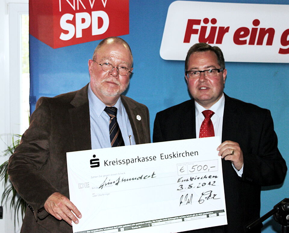 Zu den Trägern des SPD-Ehrenamtspreises gehören außerdem Franz-Georg Schaeben vom Förderverein des Marienhospitals Euskirchen und Sebastian Petermann von der IG Rurtalbahn, Arbeitskreis (AK) Bördebahn. „Im Mittelpunkt der Arbeit dieser Gruppe, bestehend aus bahnbegeisterten Menschen jeglichen Alters, steht die Wiederinbetriebnahme der Gesamtstrecke der Eifelbördebahn", sagte Schmitz. Der Förderverein des Marienhospitals Euskirchen, dessen Vorsitzender Schaeben ist, führt Infoveranstaltungen durch oder plant Freizeitaktivitäten und Kulturveranstaltungen für die Bewohner der Altenpflegeeinrichtungen. „Vor allen Dingen betreuen die Mitglieder die Patienten und älteren Menschen der Einrichtungen der Stiftung Marienhospital, soweit das nicht durch die vertragliche Pflege abgedeckt ist", hob Schmitz das Engagement Schaebens und seiner Mitstreiter hervor.