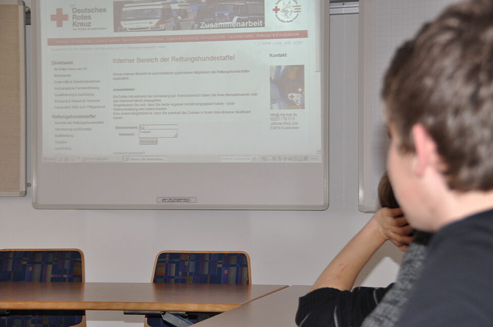 Für die 15 Schüler des Technik- und Informatikkurses an der Mechernicher Realschule stand schnell fest, dass sie auf ihrer Homepage mutige Menschen aus ihrem direkten Umfeld vorstellen wollten. Ihre Wahl fiel dabei auf die DRK-Rettungshundestaffel Kall. "Da war man von der Idee begeistert und hat uns in jeder Hinsicht unterstützt", berichtet Schüler Jan-Eric Schulz von der guten Zusammenarbeit mit den Hundeführern. Mit den DRK-Mitarbeitern besprachen die Schüler etwa die Aufgaben und Einsätze und beobachteten das Training der Zwei- und Vierbeiner.