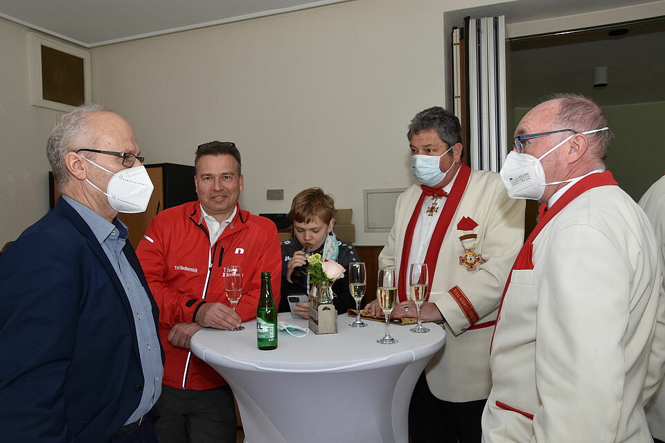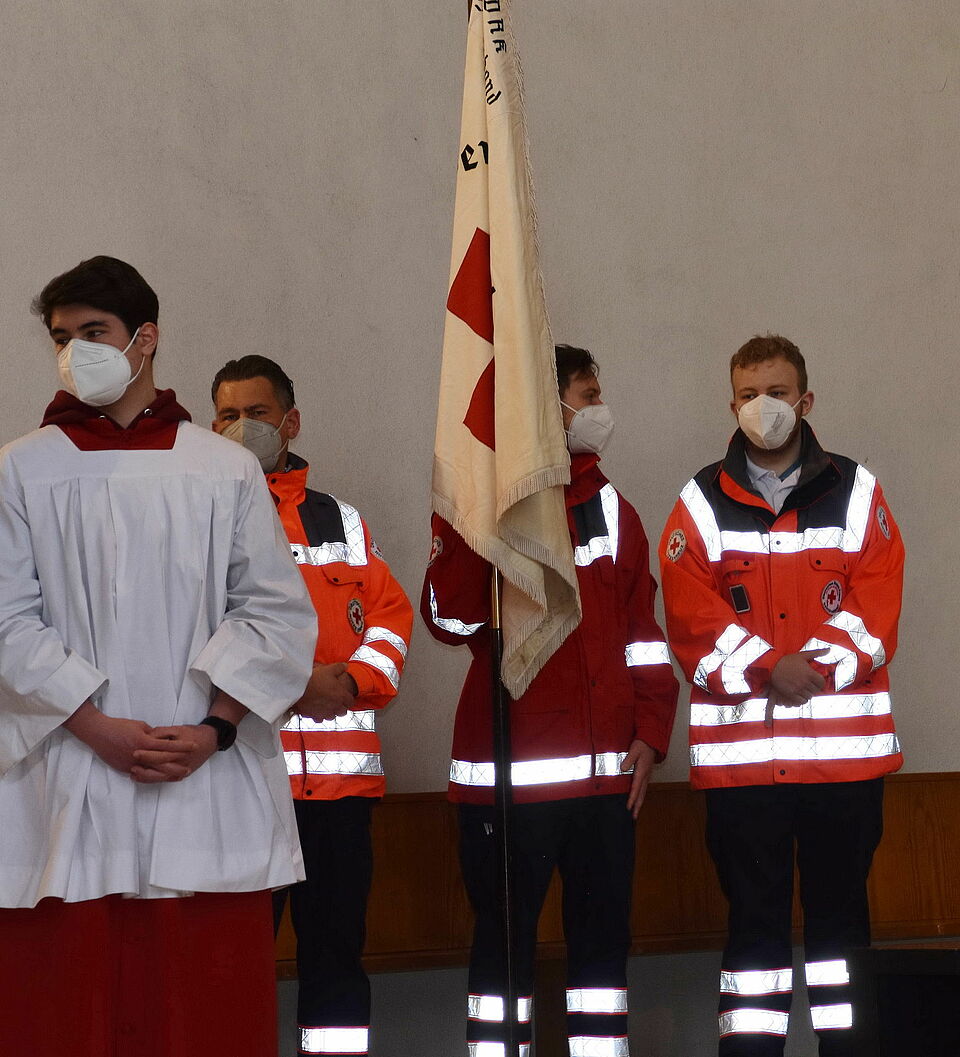 Vor Pastor Pühringers Schlusssegen bedankten sich Fahnenabordnungen kirchlicher Mechernicher Vereine, aber auch von TuS und Rotem Kreuz bei Marlies Lottermoser, die am Bleiberg eine „Institution“ gewesen sei und als solche auch in Erinnerung bleibe, so Marcel Hembach als Chef des Vereinskartells, der in Feuerwehruniform gratulierte. Aus den Händen von Festausschuss-Präsident Albert Meyer erhielt die scheidende Kindergartenleiterin einen Karnevalsorden.
