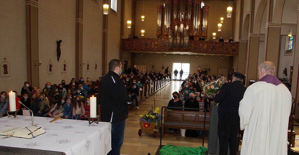 Mechernich – Einen ganz großen und auch großartigen Abschied bescherten Kinder und Erwachsene der scheidenden Kindergartenleiterin Marlies Lottermoser (63) in der Pfarrkirche St. Johannes Baptist. Dort leitete Pfarrer Erik Pühringer einen ökumenischen Wortgottesdienst, der in großen Teilen von Marlies Lottermosers ehemaligen Schützlingen gestaltet wurde.