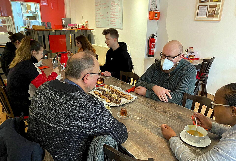 Nach circa drei Stunden trafen sich alle wieder im „Café Henry“ und es gab eine Suppe zur Stärkung. Weiter abgelegene „Stolpersteine“ wurden dann am Nachmittag von den Helferinnen und Helfern des „MO.S.ES“-Projekts per Auto aufgesucht und gereinigt, sodass am Ende des Tages alle „Stolpersteine“ in Euskirchen wieder in neuem Glanz erstrahlen konnten.