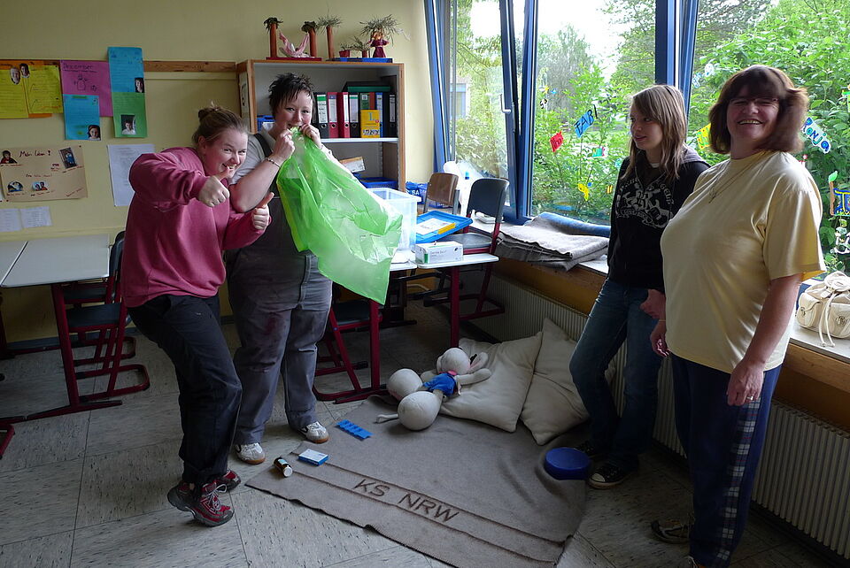 Bild DRK ZR | Eine Gruppe lustiger Mädels und ein Stofftier am Boden?