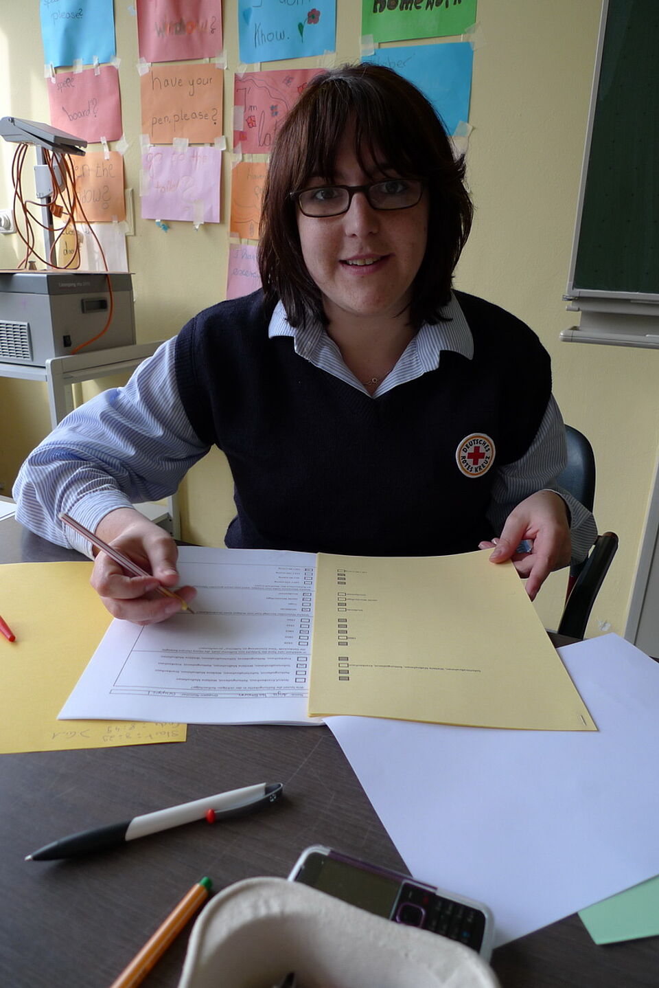 Bild DRK ZR | Natürlich gibt es auch einen schriftlichen Teil mit Fragen zur Ersten Hilfe und zum Roten Kreuz.
