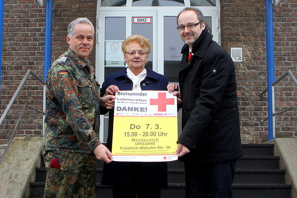 Erstmals wird der Blutspende-Termin am Donnerstag, 7. März, bei der Bundeswehr stattfinden: In der Zeit von 14:00 bis 19:30 Uhr können die Spender ins Casino an der Friedrich-Wilhelm-Straße 20 kommen.