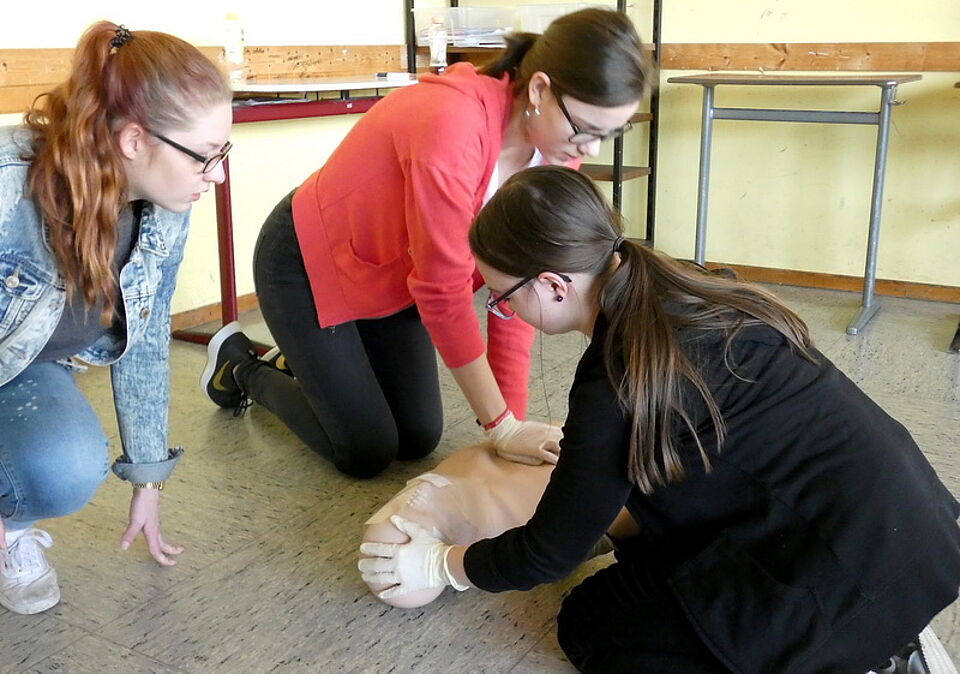 Den Wettbewerb gibt es in dieser Form bereits seit zehn Jahren. „Der Schulsanitätsdienst am Gymnasium Am Turmhof (GAT) ist allerdings ein wenig jünger. Trotzdem hat sich bereits im ersten Wettbewerbsjahr eine Gruppe engagierter Schüler des GAT zusammengefunden, um am Wettbewerb teilzunehmen,“ erklärte Christiane Heinrichs, Lehrerin und Schulsanitätsdienstbeauftragte am Gymnasium Am Turmhof. Stolz berichtete sie, dass einige Schüler sogar eine berufliche Laufbahn in dieser Richtung eingeschlagen haben. Sie erläuterte: „Beim Schulsanitätsdienst lernen die Schüler nicht nur Erste Hilfe, sondern auch wichtige soziale Kompetenzen. Von denen wird sicher keiner teilnahmslos danebenstehen wenn etwas passiert, ich bin mir sicher, sie werden handeln.“ Das GAT ging auch in diesem Jahr wieder mit drei Gruppen ins Rennen um die Pokale, darunter eine Gruppe „Frischlinge“ im Schulsanitätsdienst, die dann am Ende sogar den ersten Platz belegte.