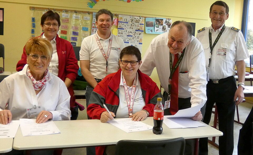 Zur Siegerehrung und Preisverleihung waren neben Karl Werner Zimmermann, Vorsitzender des DRK-Kreisverbands Euskirchen, und Stephan Schmitz, DRK-Kreisbereitschaftsleiter, auch Landrat Günter Rosenke und Mechernichs Vize-Bürgermeister Wolfgang Weilerswist erschienen.