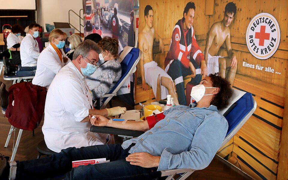 Wie jeder Spender musste Brings erst einen Fragebogen zu möglichen Vorerkrankungen ausfüllen. Anschließend wurde der Bassist der Kölschrockband Brings in den rechten Zeigefinger gepikst für einen schnellen Bluttest. Dann ging es zum Arztgespräch.