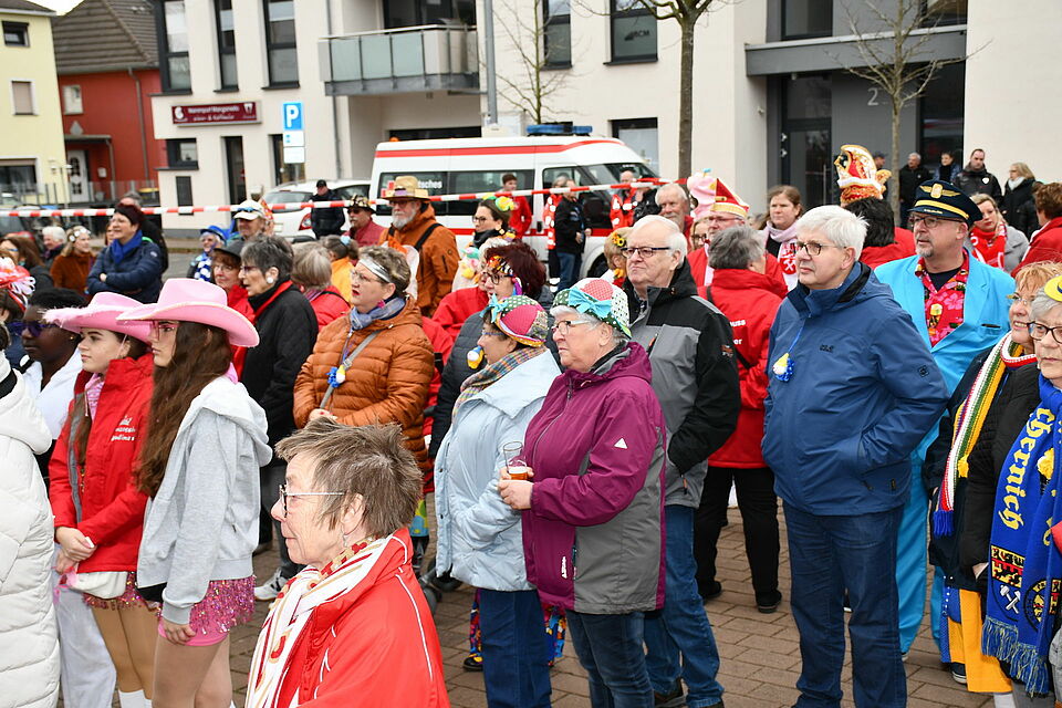 Gut hörbar war auch nach Thomas Hambachs Wasserbombenvolltreffer der Musikzug der Prinzengarde, der bereits seit 40 Jahren beim Sturm aufs Rathaus den Ton angibt. Auch Altkommandeur Addy Sechtem wurde in der Nähe des Prinzengarden-Geschützes gesichtet. Es gab im und vor dem Rathaus Kölsch und Alkoholfreies. Die Stimmung war schön, aber gefasst. Viele Jecken feierten anschließend in Lokalen, der Dreifachturnhalle und vor allem auf den Dörfern und zum Teil auch ausgelassen weiter „Wieverfastelovend“.