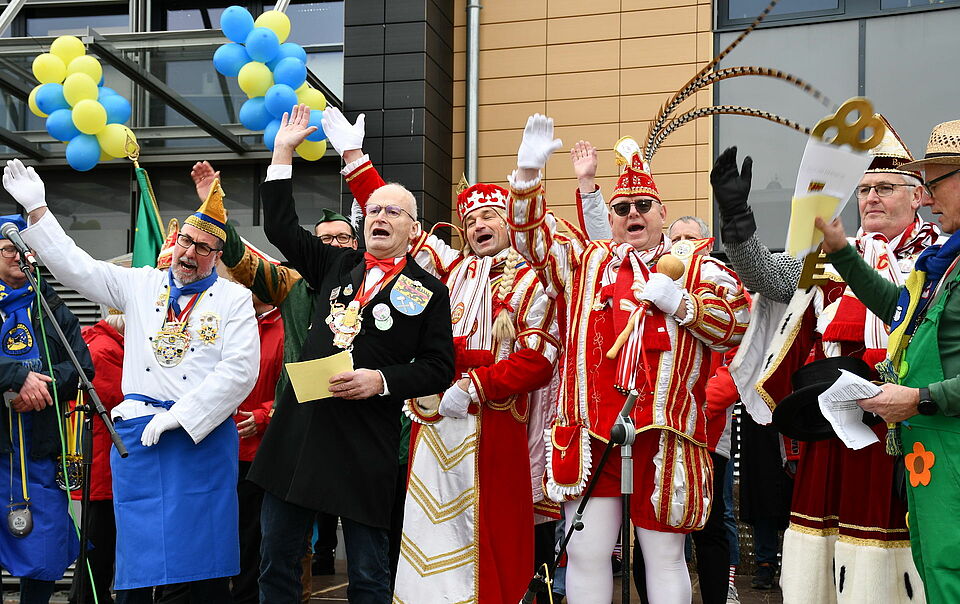Erik Kardinal Pühringer, so der Bürgermeister, werde dieser Tage „de Ahl Kirch zur Basilika“ umwidmen und Tulpensonntag von der Rathaus-Loggia den Segen „Opi op Spandau“ erteilen. Der Menge rief der Verwaltungschef zu: „Alaaf you!“ Und unter Applaus: „In diesem Sinne lieb ich Euch: Maht et joot unn schwenkt dr Hoot/ behalt köhl Blood unn joode Moot/ Oss schreck net Recep Erdogan/ Donald Trump unn Vict/Orban/ Noch Wladi Putins Jrößenwahn/ Mir wolle endlich Fredde han…“