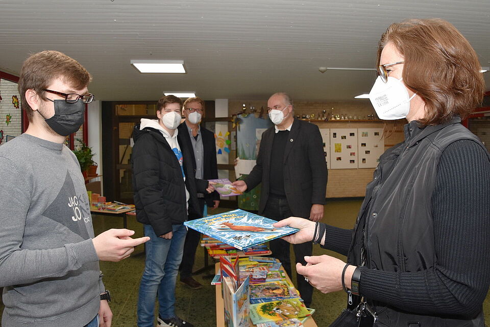Bücher zeigten und liehen die ständigen Lückerather Büchereimitarbeiterinnen Sonja Brauner, Lisa Bolender und Monika Liebertz aus. An der Grundschule Mechernich betreuten Nikita Unruh und Jonas Feind vom Bundesfreiwilligendienst die Büchertauschbörse, die Lehrerin Andrea Mohr für den Vorlesetag organisiert hatte.
