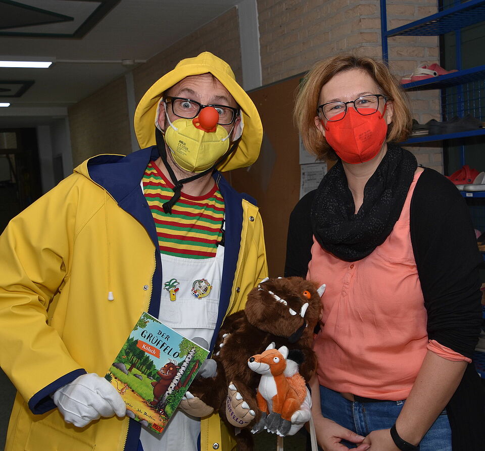 Das Wagnis „Mundart Kölsch“, so „Jeck im Rähn“ Björn Wassong, sei nebenbei gelungen. Zum leichteren Verständnis seines „Grüffelo auf Platt“ hatte der Weyerer allerdings einen Original-Stoffgrüffelo und andere Figuren mitgebracht“.