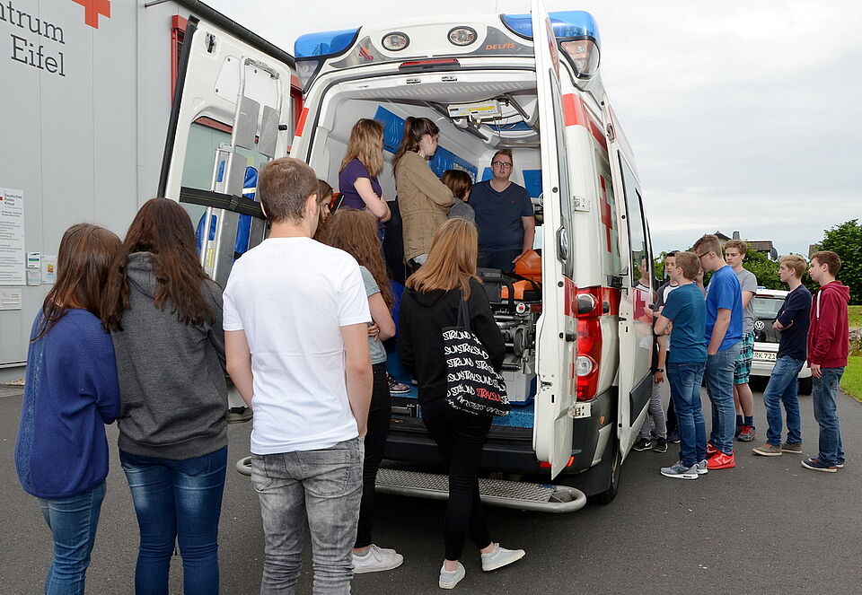 „Der Inhalt des Kurses ging weit über das normale Maß der Ersten Hilfe hinaus und legte einen besonderen Schwerpunkt auf die möglichen Herausforderungen in der Schule“, erklärte Lehrerin Christiane Heinrichs, die Leiterin des GAT-Schulsanitätsdienstes. Neben Erstdiagnostik, Anamnese, Untersuchung des Betroffenen, Messwerten und Dokumentation wurden auch die Maßnahmen bei Bewusstlosigkeit, Atemnot, Schlaganfall, Polytrauma und Herzinfarkt intensiv erörtert. An vielen Fallbeispielen erprobten die Schüler Maßnahmen zur Wundversorgung.