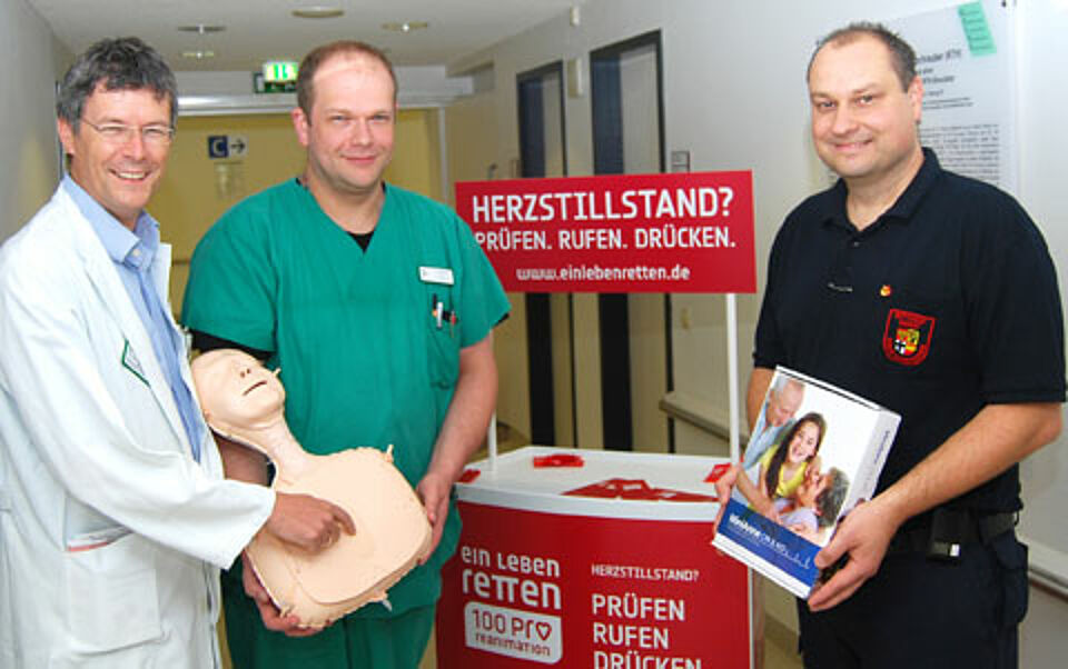 Der Rettungsdienst des Kreises Euskirchen unter ärztlicher Leitung von Dr. med. Gisela Neff und die Klinik für Anästhesiologie, Operative Intensivmedizin und Schmerztherapie im Kreiskrankenhaus Mechernich mit Chefarzt PD Dr. med. Rudolf Hering geben Antworten und zeigen in der Aktionswoche gemeinsam, wie man einen Herz-Kreislauf-Stillstand erkennt und was im Fall der Fälle zu tun ist.