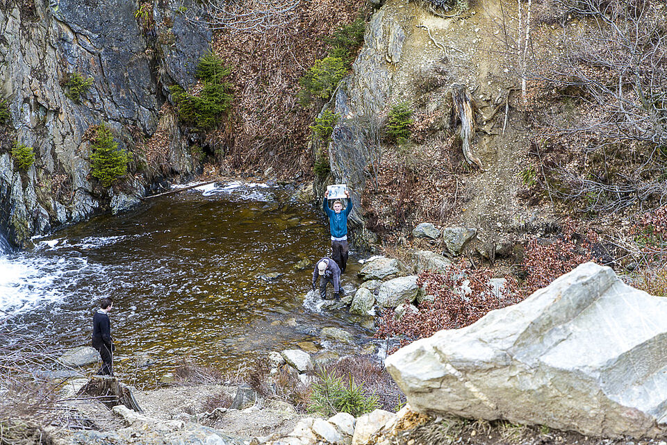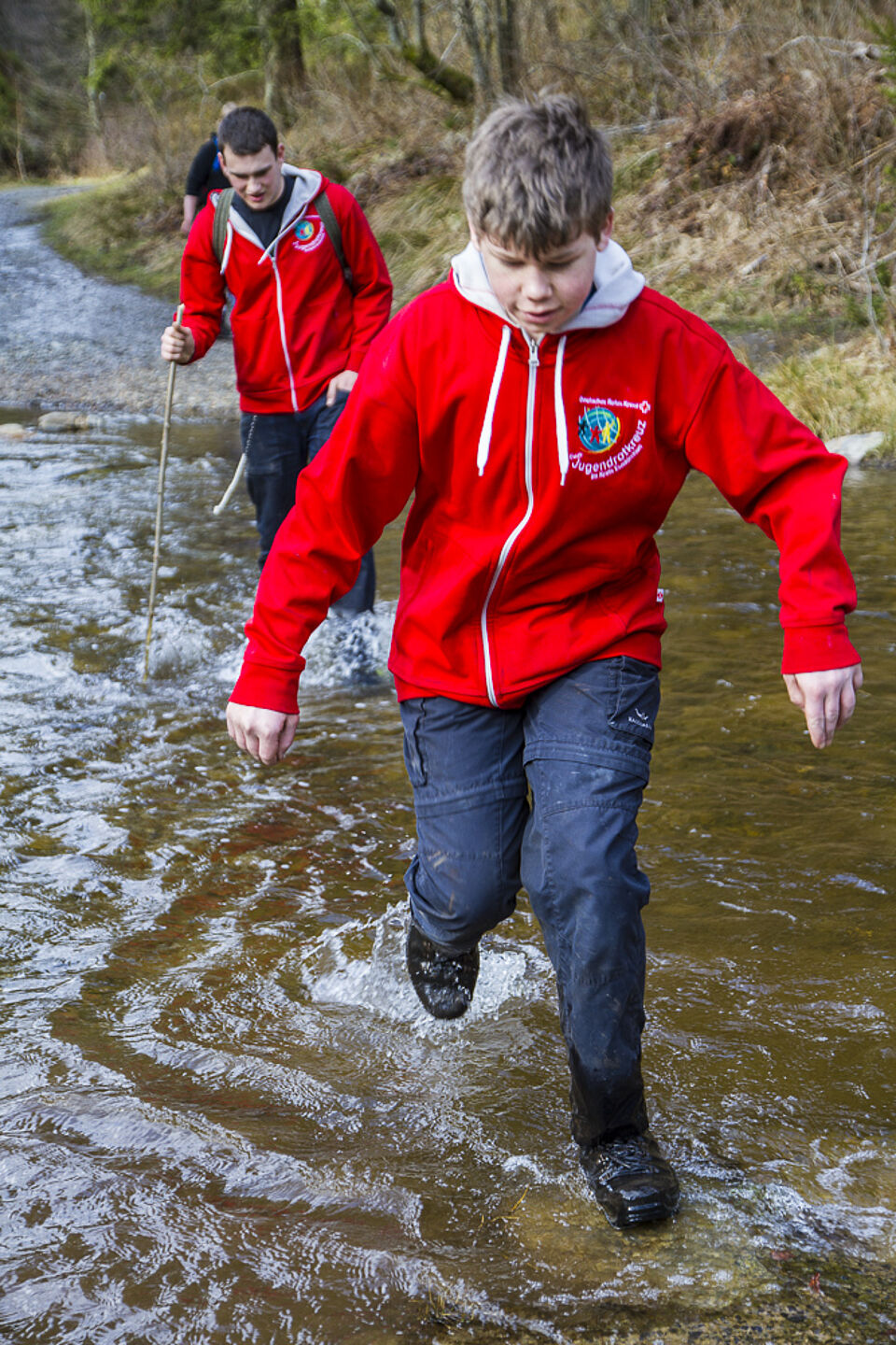 Bild DRK JS | Zur Abwechslung mal wieder ein Bach - mittlerweile waren einige so nass, dass man lieber mitten durch statt oben drüber ging.