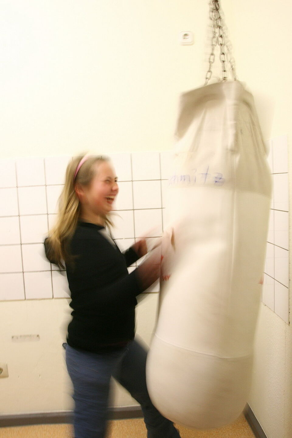 „Es fehlt nur noch ein wenig die liebevolle Ausgestaltung“, meinte Schulleiterin Wall, aber das würde in nächster Zeit auch in Angriff genommen werden. Schon jetzt freuen sich die Kinder wie die siebenjährige Viktoria oder der zehnjährige Philipp über mehr Platz und helle Räume. Bei der zehnjährigen Joana kommt auch gerade der Tobe-Raum gut an: Am Boxsack können sich die Kinder nach langem Stillsitzen tüchtig auslassen.