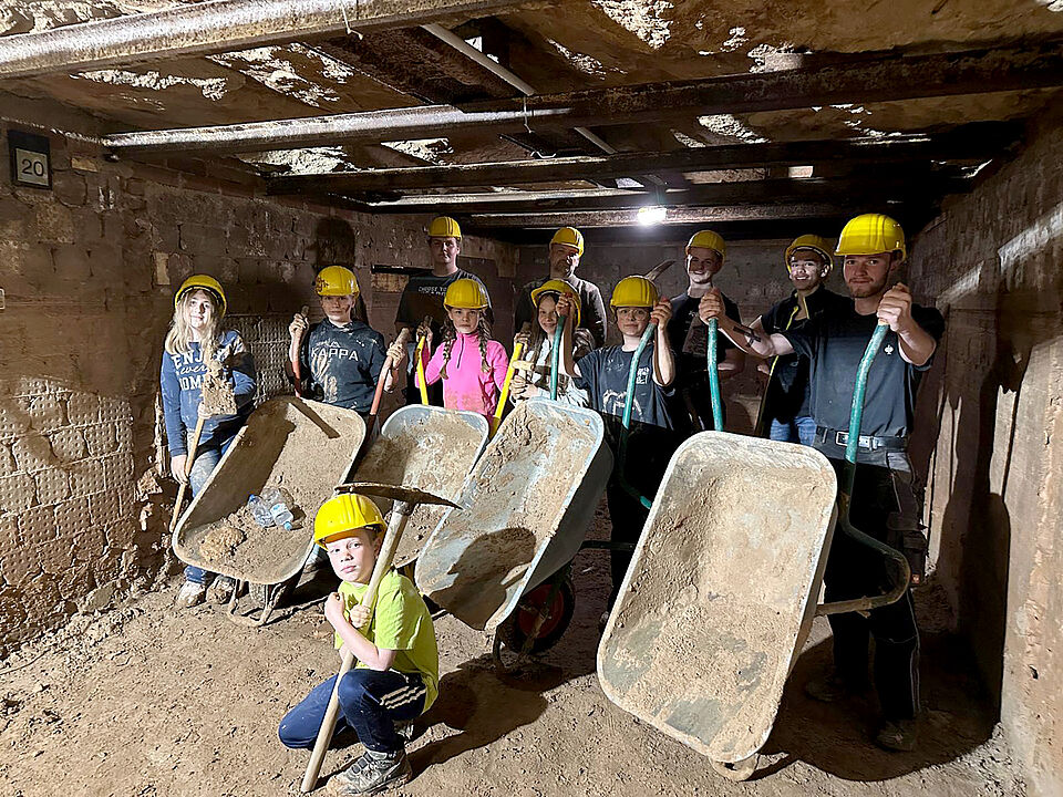 Günter Nießen, Vorsitzender des Fördervereins des Bergbau-Museums, war anfangs gar nicht begeistert: „Mir war das im Prinzip nicht recht, die Kinder da unten Schleppen zu lassen.“ Doch seine Sorgen konnten gemeinsam mit dem Mechernicher DRK-Verantwortlichen Sascha Suijkerland schnell ausgeräumt werden. Die Lösung: strikte Verhaltensanweisungen, Schutzkleidung und nur halb gefüllte Schubkarren.