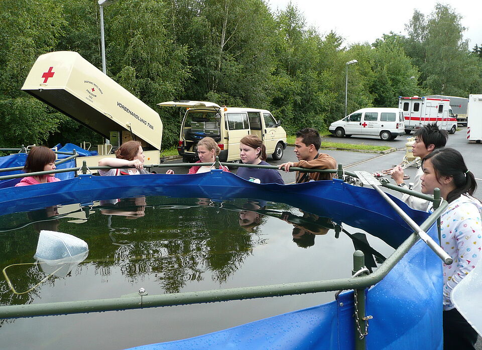 Bild DRK ZR | Einer der internationalen Besucher lernt die Möglichkeiten der Wasseraufbereitung kennen. Vielleicht hat er später einmal Gelegenheit, das Gelernte in seiner Heimat bei einem Katastropheneinsatz anzuwenden.