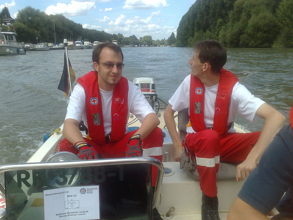 Vier Stunden lang übten die Rotkreuzler verschiedene Manöver, zum Beispiel "Mann über Bord", "Wenden auf engstem Raum", "Ankern und Anlegen" , sowie das Vorbereiten und "Slippen", also das Zu-Wasser-Lassen des Bootes.