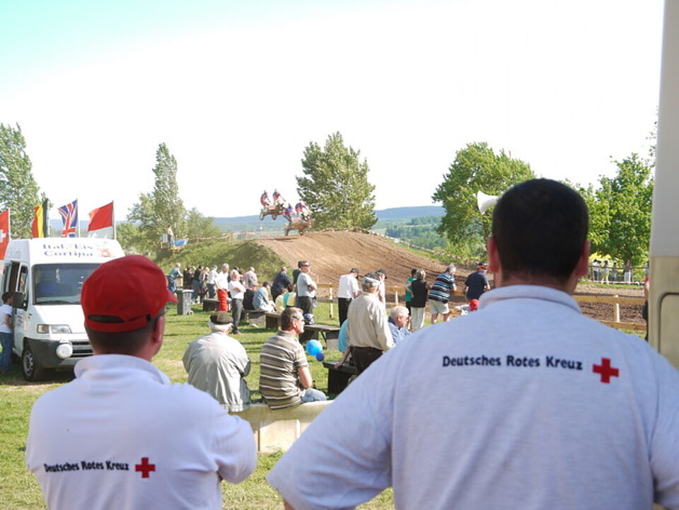 Natürlich darf bei einem solch rasanten Spektakel das Rote Kreuz aus dem Kreis Euskirchen nicht fehlen! Schon seit vielen Jahren sorgt das Rote Kreuz mit seinen ehrenamtlichen Helfern und Rettungswagen (RTW) für die sanitätsdienstliche Versorgung der Fahrer und Besucher.