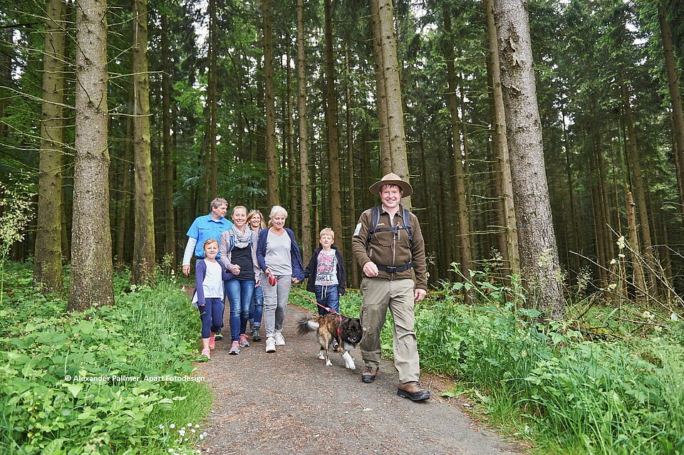 Frühaufsteher können bereits bei einer Sonnenaufgangswanderung um 7 Uhr in den Tag starten. Ranger und Junior-Ranger des Nationalparks Eifel bieten um 11 Uhr und 13 Uhr Touren für große und kleine Füße an. Ergänzt wird das Wanderangebot durch Geländeführungen und Exkursionen auf dem weitläufigen Areal von Vogelsang IP, auf dem sich eine der größten hinterlassenen Einrichtungen des Nationalsozialismus, die ehemalige NS-Ordensburg Vogelsang, befindet.