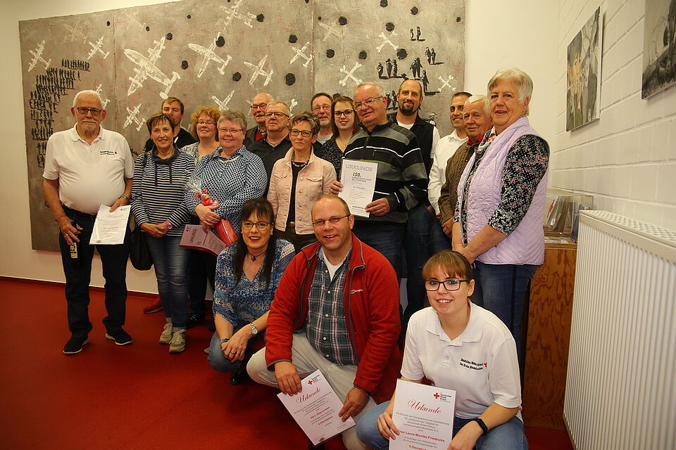 Bereits 75 Blutspenden haben Gisela Eckert, Melanie Weber und Walter Weimbs abgeliefert. Für hundert Blutspenden wurde Ursula Welter ausgezeichnet, für 150 Walter Jahnsen und Helmut Keuer. 165mal zur Ader gelassen wurde Hans-Reiner Schrick.