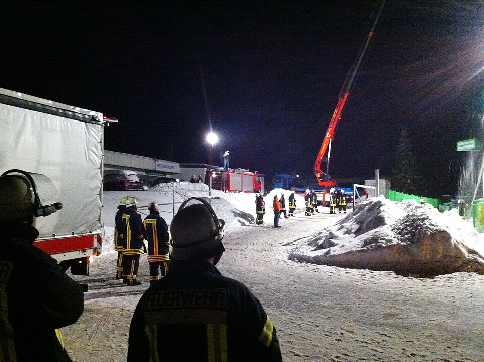 Am gestrigen Abend kamen jetzt die Schleidener Feuerwehren an einem Handelsgebäude in Oberhausen zum Einsatz. Das Dach musste von der Schnee- und Eislast befreit werden, um weitere Gefahren abzuwehren.