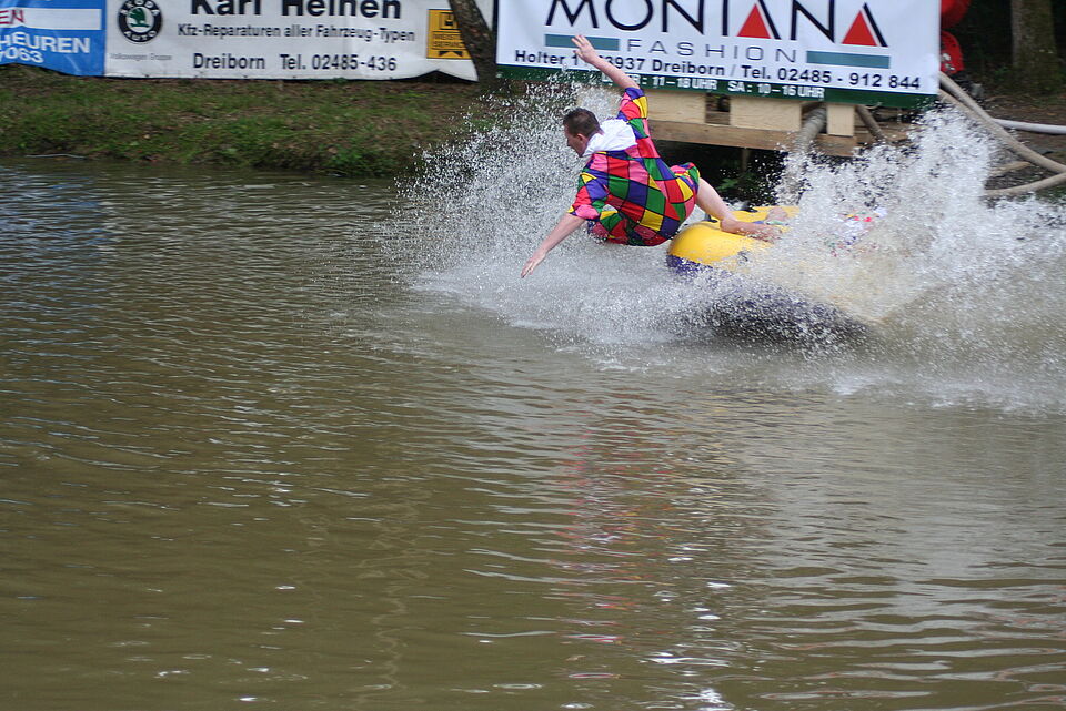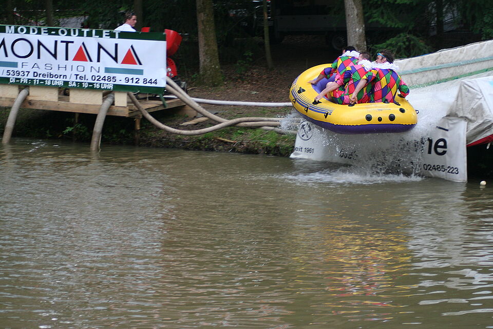 Veranstaltungsort war der Weiher zwischen Dreiborn und Berescheid. Mit handelsüblichen Schlauchbooten, die vom Junggesellenverein gestellt oder selbst mitgebracht wurden, rasten die Dreier-Teams, deren Teilnehmer mindestens das Seepferdchen abgelegt haben müssen, mit rund 40 Kilometer in der Stunde über die etwa 100 Meter lange "Wildwasserbahn" über eine Rampe hinunter in den "erfrischenden" Weiher.