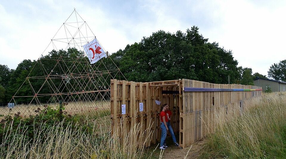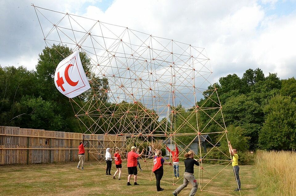 Gleich mehrere Projekte setzten die Jugendlichen und jungen Erwachsenen gemeinsam im Außen- und Innenbereich der Anlage um: Einen neuen Escape-Room und den „Tunnel of Visions“ (zu Deutsch: „Tunnel der Visionen“). Zusätzlich fertigten sie gemeinsam eine große, hölzerne Pyramide, die aus vielen Dreiecken zusammengesetzt wurde, an – mit wehendem, rotem Kreuz und rotem Halbmond an der hohen Spitze.