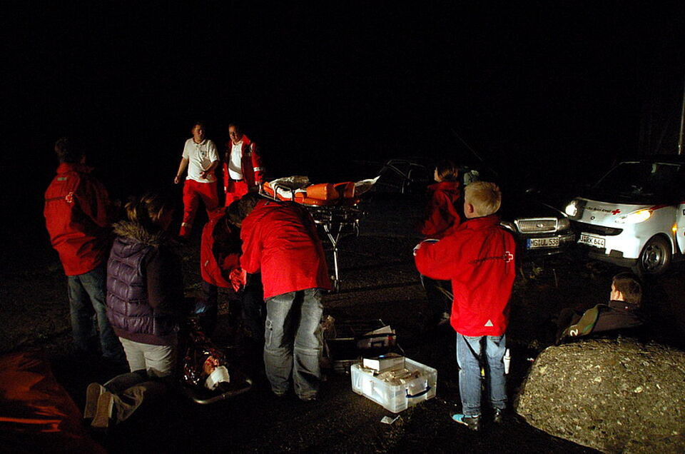 Doch plötzlich wurde der "Alltag" jäh unterbrochen. Die Rettungsleitstelle meldete einen angeblichen Unfall auf dem Adlerhof. Sofort rückten die Jugendlichen mit ihren Betreuern aus, um zu helfen. Nicht zum letzten Mal an diesem Tag, wie sich später herausstellen sollte.