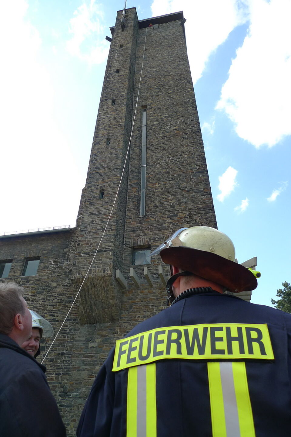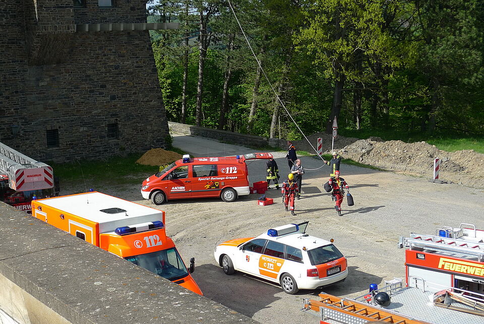 Schleiden / Vogelsang IP - Da haben alle wirklich noch einmal Glück gehabt. Ein lange erwartetes Einsatzszenario wurde auf dem Turm der Burg Vogelsang jetzt Realität.