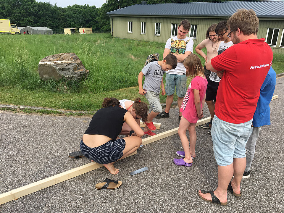 Für die baubegeisterten unter den Pänz haben wir gemeinsam einen Barfußpfad gebaut, welcher nun gerne von jedem besucht und ausgiebig getestet werden kann. Und natürlich durfte im Programm auch unser Rotkreuz-Fluchthaus nicht fehlen. Hier kann man in Form eines Escaperooms selber eine Idee davon bekommen, wie eine Flucht abläuft und welche Hindernisse es gibt..