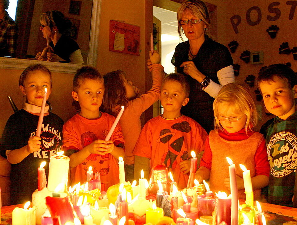 „Ich hatte einmal etwas darüber gelesen, und wir haben es dann umgesetzt“, erklärte Andrea Wollgarten ihre Aktion. Dazu bat sie die Eltern, den Kindern sämtliche übrig gebliebenen Weihnachtskerzen - die „Stümpchen“ eben - und alle restlichen Weihnachtsleckereien mit ins Familienzentrum zu geben.