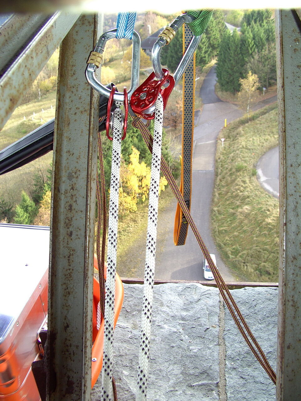 Sicherheit steht immer an erster Stelle. Deshalb übte die Rotkreuz-Bergwacht die Rettung verletzter oder erkrankter Besucher vom Plateau des Turms auf "Burg Vogelsang".