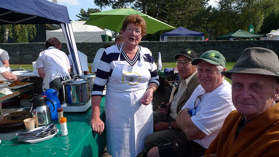 Auf dem Vogelsanger Adlerhof fand zeitgleich die Abschlussveranstaltung des Radaktionstages statt. Neben vielen Ständen, die Nützliches rund ums Rad und Informationen zum Nationalpark Eifel und zu Vogelsang anboten, gab es Musik vom Feinsten auf der Hauptbühne. Die Eifeler Landfrauen sorgten, wie gewohnt hervorragend, für die Beköstigung der Besucher mit Eifeler Spezialitäten.