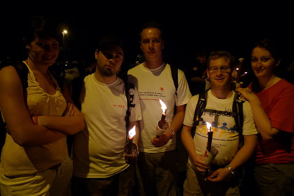 Nach dem Besuch der Knochenkapelle Ossario di Solferino und des Rotkreuz-Denkmals stand am Samstagabend der Höhepunkt der Reise an, die Fiaccolata, ein Fackelzug rund um Solferino. Nach einer Veranstaltung mit vielen Teilnehmern wurden die Fackeln entzündet und der über sieben Kilometer lange Zug setzte sich in Bewegung. Die Stimmung war klasse, man lernte viele Leute aus aller Herren Länder kennen. Wenn man sich umschaute, sah man ein Meer von Menschen mit Fackeln. „Das war Gänsehautfeeling pur. Hier kann man die Rotkreuzidee hautnah erleben“ meint Christoph Thomaßen, Sachbearbeiter beim Roten Kreuz in Euskirchen.