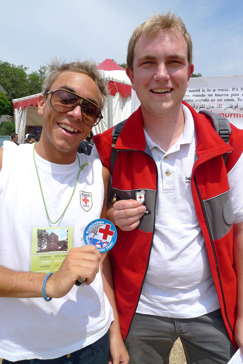 Nach einer Führung durch das Museum fuhr die Gruppe am Nachmittag zum ersten Mal in das Camp am Rande von Solferino, in dem über 7000 Rotkreuzler aus vielen der 152 Rotkreuz- und Rothalbmondgesellschaften weltweit zusammengekommen waren, um die Entstehung der Rotkreuzidee vor genau 150 Jahren zu feiern. Es herrschte eine tolle Stimmung, und man konnte Menschen aus vielen verschiedenen Ländern kennenlernen.