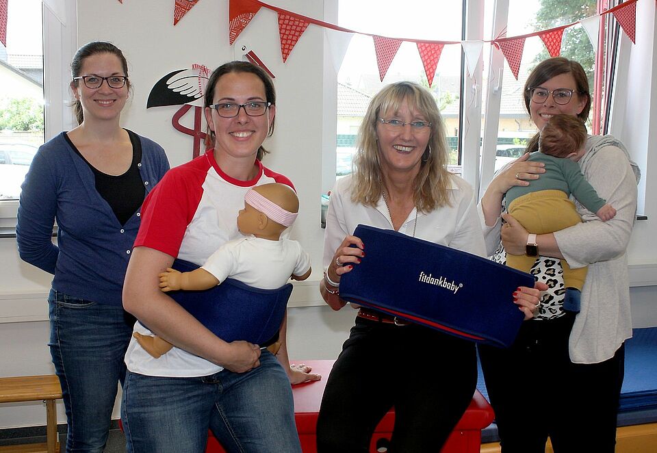 Die Babys können während der Übungen am Körper getragen werden. Auch bei Kräftigungsübungen auf der Gymnastikmatte werden sie mit einbezogen, zum Beispiel mit Kinderliedern, bunten Tüchern oder Kniereitern.
