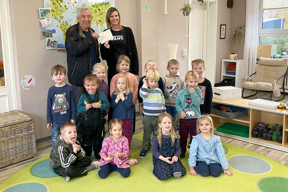Deren Vorsitzender Willi Greuel war jedenfalls gerne nach Herhahn gekommen. Denn dort konnte der Mechernicher einen symbolischen Scheck über 300 Euro von den Erzieherinnen und Kindern entgegennehmen.