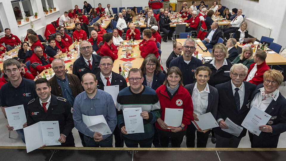 Von dieser Leidenschaft, diesem Engagement und dieser Menschlichkeit fand sich später ganz viel wieder im Tätigkeitsbericht, den Karl Werner Zimmermann präsentierte. Etwa als er über die Arbeit des Kriseninterventionsdiensts berichtete. „Die Kolleginnen und Kollegen waren 2023 54 Mal im Einsatz und haben 209 Personen betreut“, so der DRK-Vorsitzende: „Eine ganz wichtige Arbeit, die, so soll es ja auch sein, im geschützten Raum passiert, und daher eben selten Aufmerksamkeit erregt, obwohl sie für die betreuten Menschen so unerlässlich ist.“
