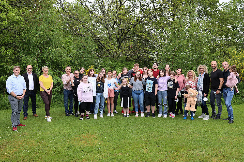 Landrat Markus Ramers und der Schleidener Bürgermeister Ingo Pfennings besuchten die jungen Leute am Freitagnachmittag bei ihren Dreharbeiten in Vogelsang. Ramers: „Ich finde euren Mut sehr beeindruckend, aber auch die Tatsache, dass ihr euch in dieser schweren Zeit nicht habt entmutigen lassen und durchgehalten habt. Ich habe großen Respekt vor eurem Engagement und bin mir sicher, dass ihr irgendwann auf eine tolle Zeit zurückblicken werdet.“