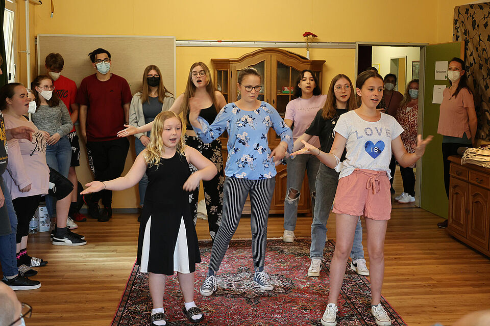 Auch Ingo Pfennings, der vor seiner Bürgermeistertätigkeit in der Medienbranche gearbeitet hatte, war beeindruckt von der schauspielerischen und gesanglichen Leistung, die die jungen Leute vor der Kamera zeigten und von denen die Gäste eine Kostprobe serviert bekamen.
