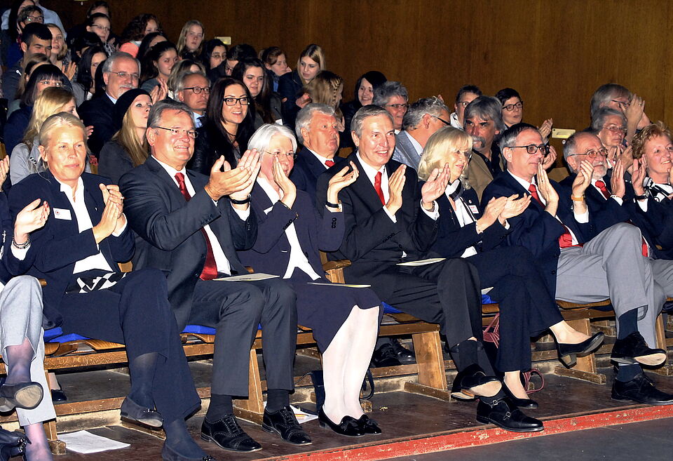 Als „zwei Jubiläen der Menschlichkeit“ bezeichnete Landrat Günter Rosenke den Anlass der Feier. „Das Rote Kreuz hat immer da geholfen, wo menschliche Hilfe am dringlichsten war“, betonte er. Dies gelte in einer alternden Gesellschaft insbesondere auch für die DRK-Schwesternschaft, so der Landrat: „Immer mehr Pflegebedürftige lassen die Nachfrage nach qualifizierten Pflegekräften steigen.“ An die langjährige Leiterin der Euskirchener Altenpflegeschule, Margot Ackermann, gewandt, sagte er: „Wie gut, dass wir Ihnen die Räume im Thomas-Eßer-Berufskolleg für den Aufbau der Schule zur Verfügung gestellt haben.“ Im November 1990 haben die ersten Schüler in Euskirchen ihre Ausbildung begonnen, seitdem wurden dort rund 600 Altenpfleger und Altenpflegerinnen ausgebildet. Aktuell befinden sich über 100 Schüler in der Ausbildung. Dabei kooperiert das Fachseminar mit über 50 Einrichtungen im gesamten Kreis Euskirchen.