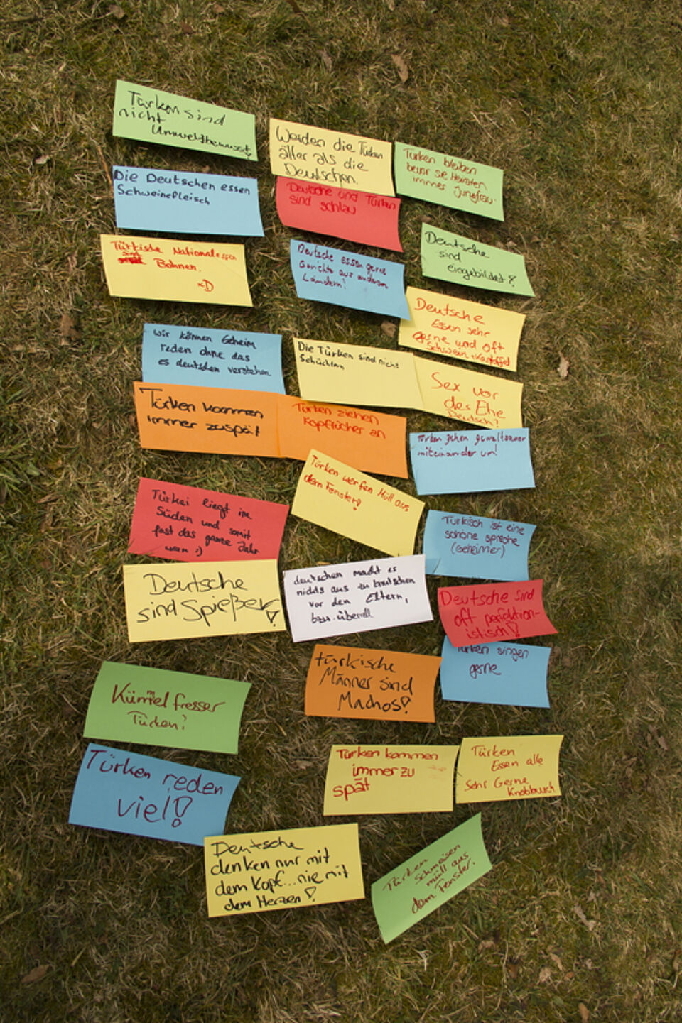 Am Sonntag startete das Programm mit vielen Vorurteilen. Gemeinsam wurden diese besprochen und gut die Hälfte aller genannten Vorurteile stellten sich als Falsch heraus. Im Anschluss wurde noch eine gemeinsame Collage über die Unterschiede, vor allem aber die Gemeinsamkeiten erstellt.