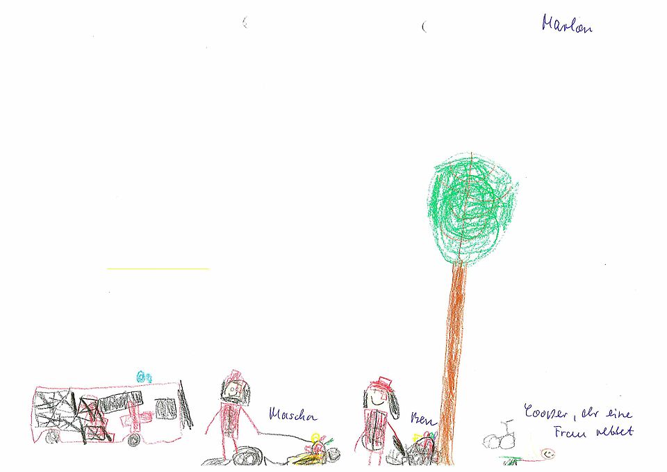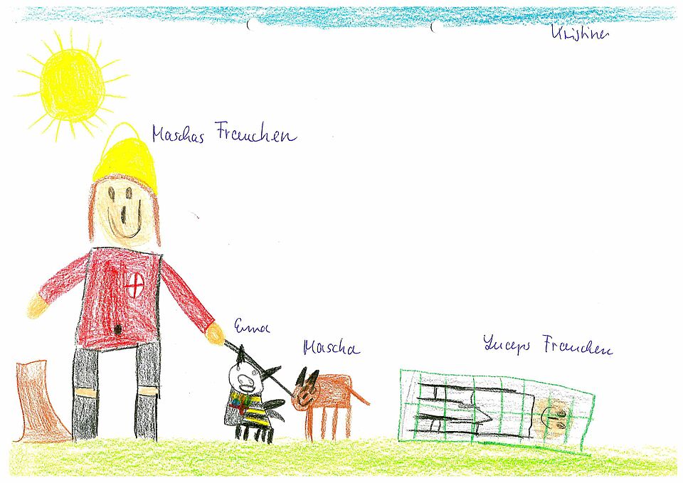 Zum Abschluss des Vormittags durften die Mädchen und Jungen das Einsatzauto besichtigen, bevor sich die Hundeführerinnen von glücklichen Kindern verabschiedeten. Als Erinnerung überreichten die Kinder den Rotkreuzlern selbstgemalte Bilder.