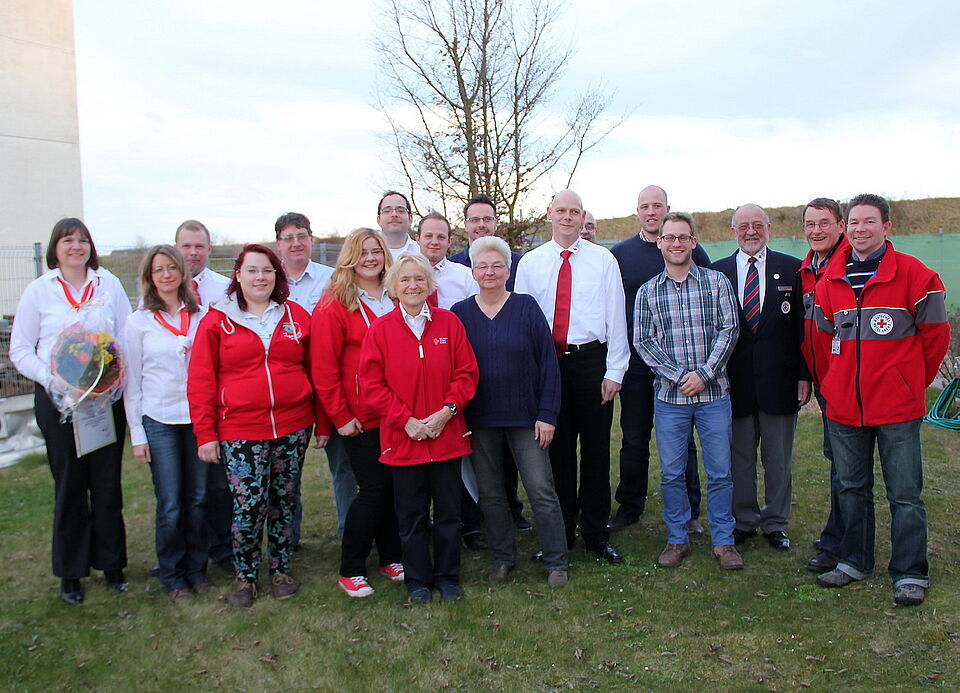 Außerdem stand die Ehrung langjähriger freiwilliger Helfer an. Seit fünf Dienstjahren sind Michael Gissinger und Andreas Schwill dabei. Auf zehn Dienstjahre bringen es Christan Wendler, Christoph Thomaßen und Dr. Andreas Werth. Für 15 Dienstjahre wurden Peter Jungbluth, Michaela Jungbluth und Beate-Maria Lindlar ausgezeichnet. Auf 20 Dienstjahre blickt Georg Forster zurück. Und mit sage und schreibe 55 Dienstjahren ist Daniel Nolden einer der verdientesten Helfer im Roten Kreuz.