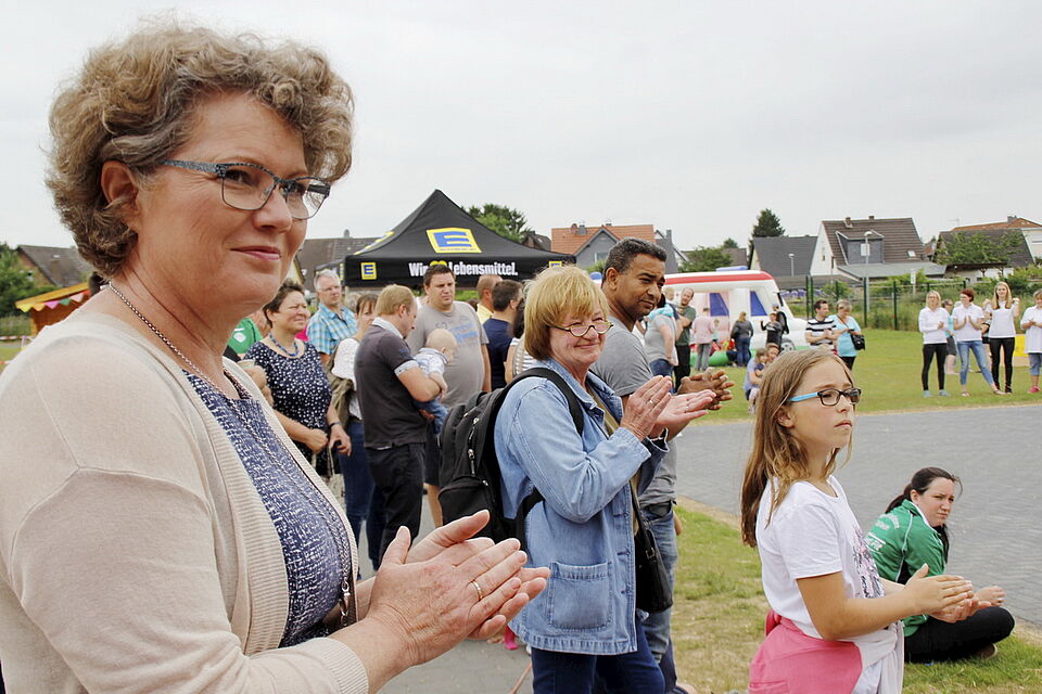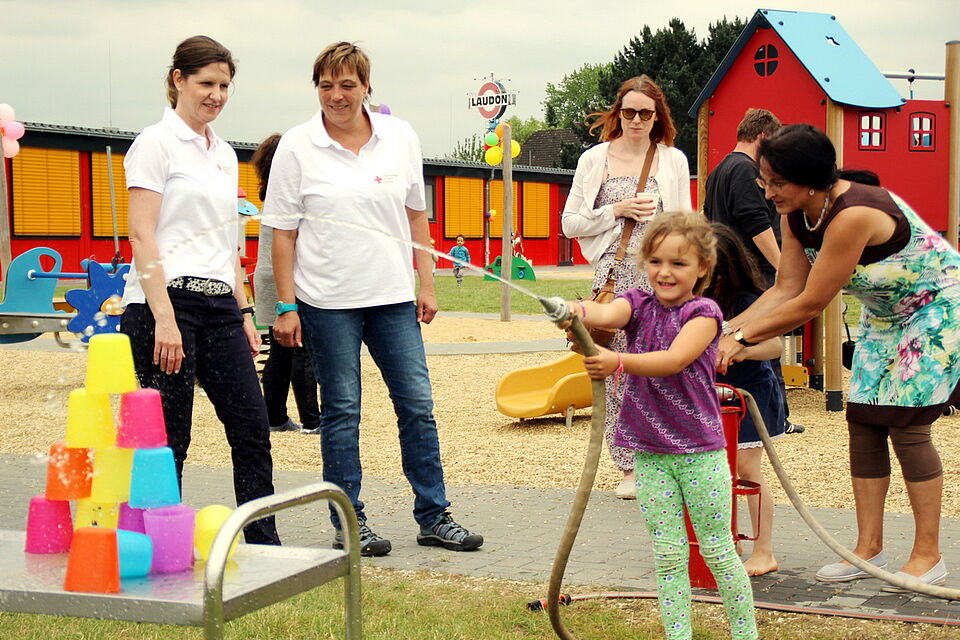 Etliche Attraktionen wurden auf dem weitläufigen Gelände den kleinen und großen Besuchern geboten: wie etwa Ballschießen auf die „verrückte Torwand“, lustiges Kinder-Schubkarren-Wettfahren oder „Wasser marsch“ beim Becher-Umwerf-Spaß. Sogar „Regenbogenpfähle“ konnten von den Kindern bunt verziert werden.