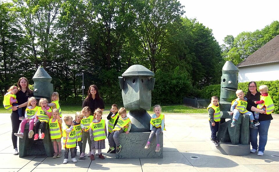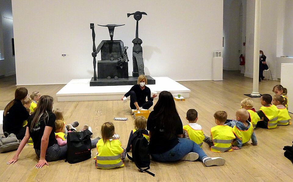 Begleitet von einer Museumspädagogin setzten sie sich zunächst mit einer Skulptur des berühmten Künstlers auseinander. Die Kinder versuchten zu erraten, was man in der Skulptur erkennen kann, zum Beispiel einen Stab, eine Flosse oder ein Vogelgesicht.